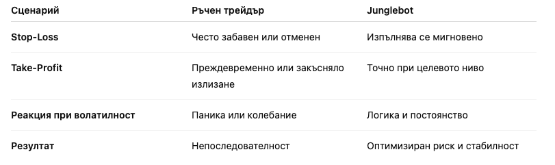 Това показва как автоматизацията премахва емоциите и въвежда постоянна дисциплина – основата на устойчивия растеж в крипто търговията.