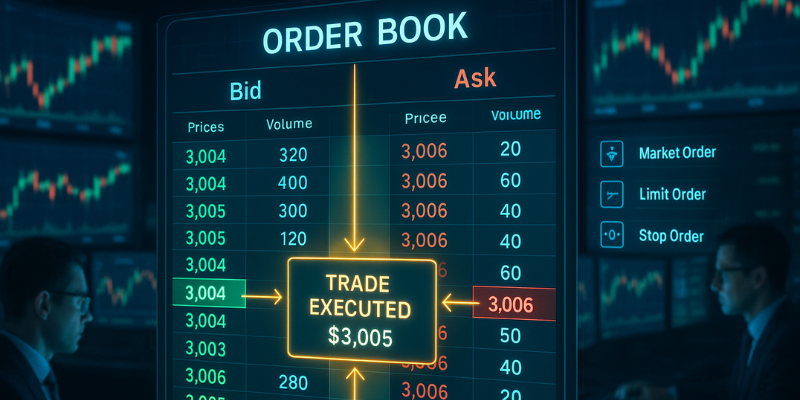 If someone places a market buy order, it purchases Ethereum at $3,005—the lowest available ask. Once that order fills, the next lowest ask becomes the new asking price.