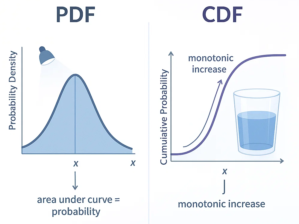 Statistically working, either with finance or data analysis, two of the biggest terms that are always brought up are the Probability Density Function (PDF) and the Cumulative Distribution Function (CDF). Understanding what is the principal difference between PDF and CDF is essential, especially in use cases where portfolio management is concerned, with key decisions relying on risk and return distributions.