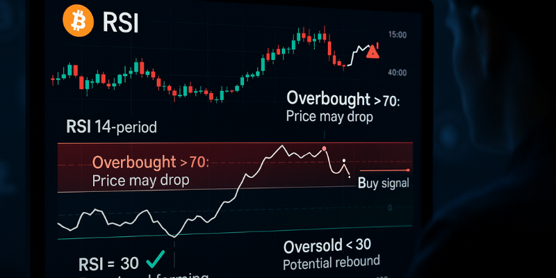 RSI helps traders spot when a crypto asset is potentially overbought (too expensive) or oversold (undervalued). For example, if Bitcoin’s RSI hits 80, it might signal a short-term pullback.
