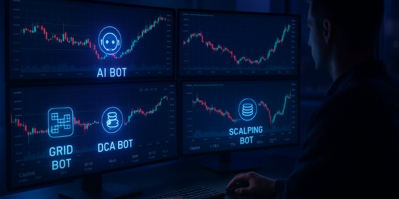 - Using multiple bots allows you to run different strategies simultaneously: Grid, DCA, AI-driven, or scalping bots.